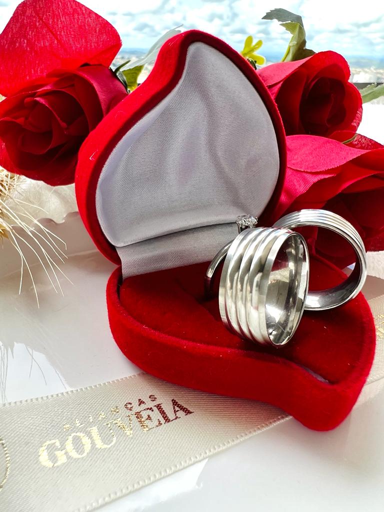 Às alianças são em aço prata (aço inox) não oxida, não descasca e não enferruja. Pode ser usado para todas as atividades do dia a dia normalmente, material é prata por si só, não contém banho, então não existe a possibilidade de alteração de coloração.