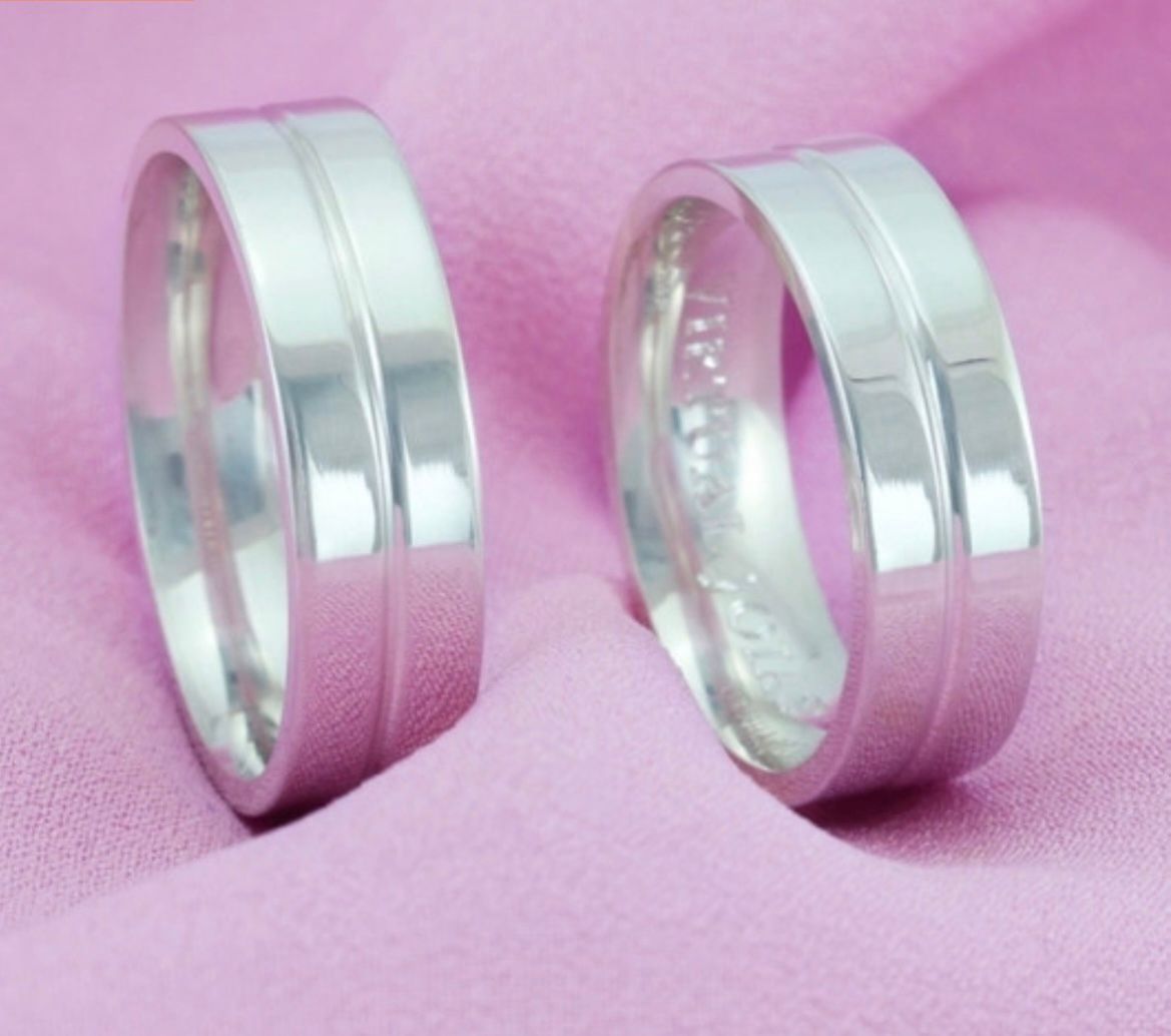 Par de Alianças de Prata 950 – Reta Friso no Meio