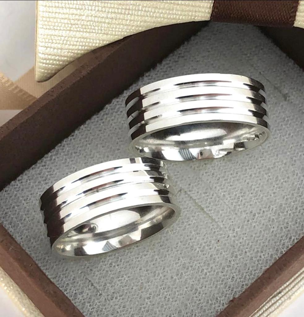 Par de Alianças de Prata 950 – Reta Três Frisos
