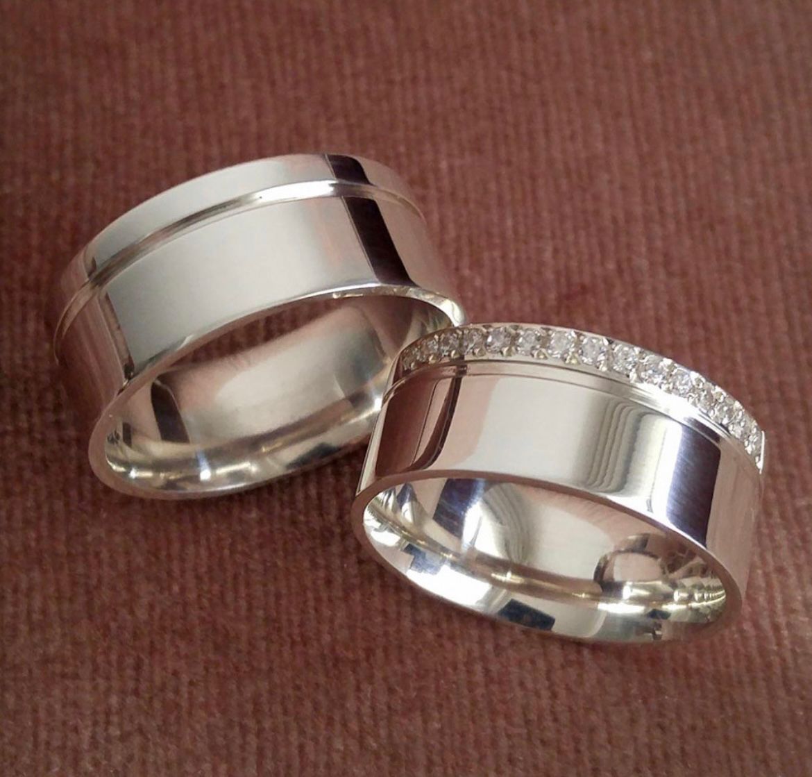 As alianças de namoro são essenciais para eternizar seu pedido. Veja a beleza dessas alianças de prata 950 com o moderno formato e 8MM de largura.