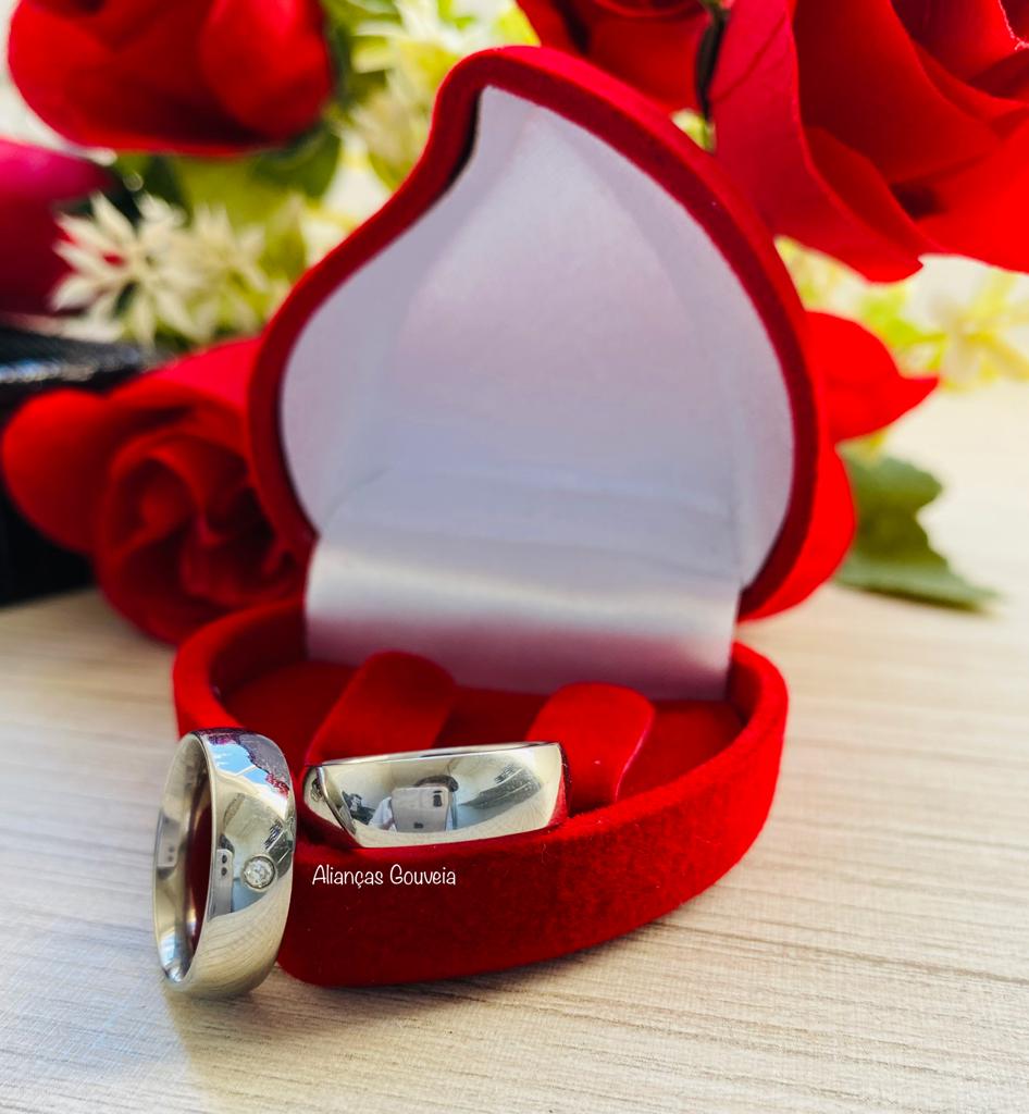 Às alianças são em aço prata (aço inox) não oxida, não descasca e não enferruja. Pode ser usado para todas as atividades do dia a dia normalmente, material é prata por si só, não contém banho, então não existe a possibilidade de alteração de coloração.