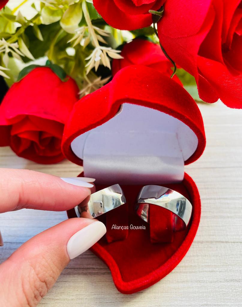 Às alianças são em aço prata (aço inox) não oxida, não descasca e não enferruja. Pode ser usado para todas as atividades do dia a dia normalmente, material é prata por si só, não contém banho, então não existe a possibilidade de alteração de coloração.
