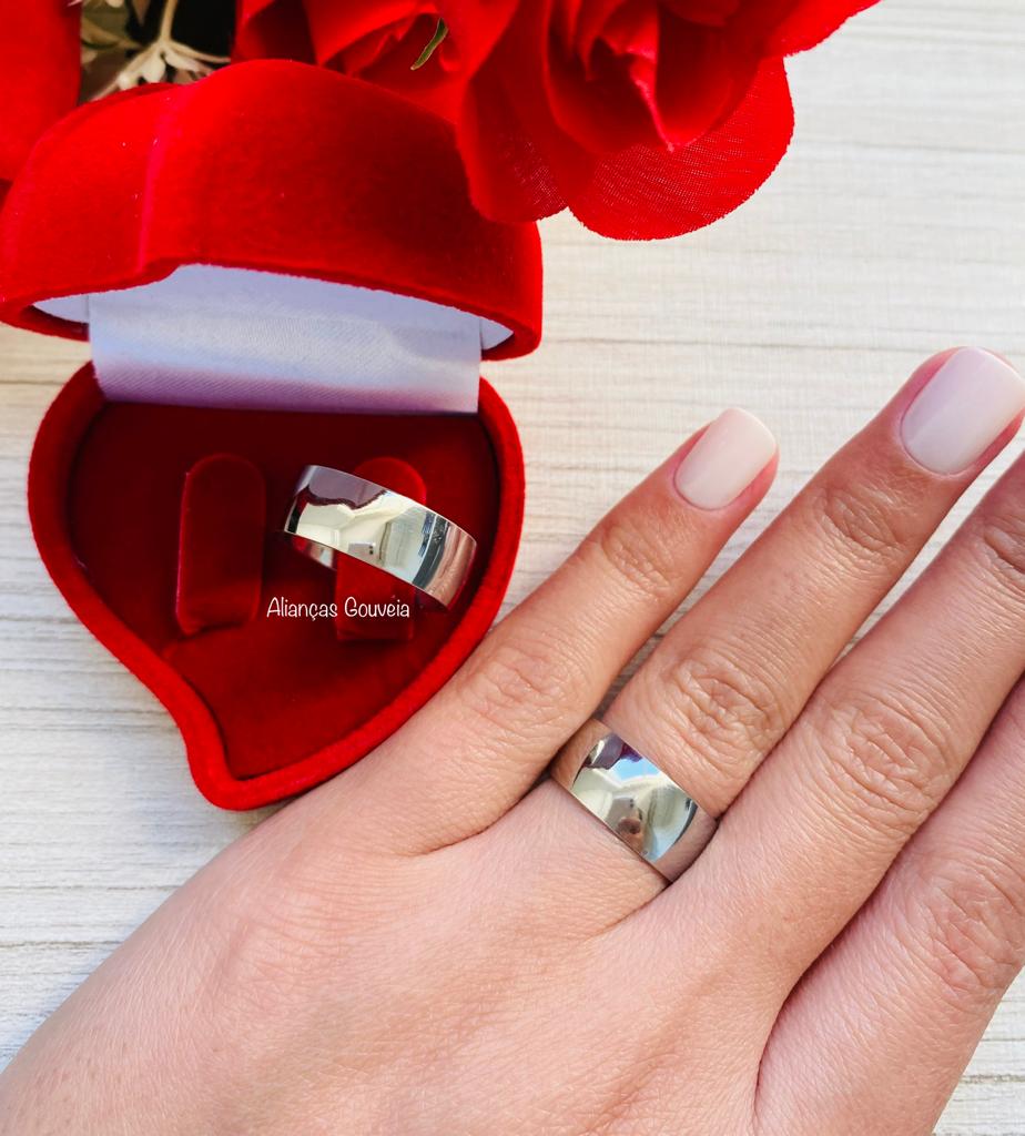 Esse é um lindo Par de Alianças de Aço Inoxidável Abaulada de 8MM de largura