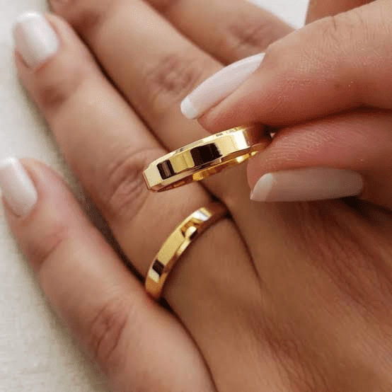 Par Alianças de Ouro 18K 6MM de Largura Chanfrada 9 Gramas de Ouro