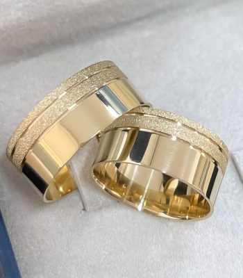 Par de Alianças Banhadas Reta 4MM Jateada New