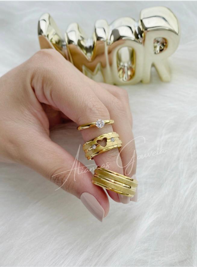 Par Alianças de Aço Inoxidável Dourada Jateada friso no canto