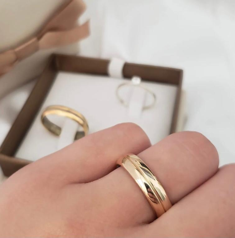 Par de Alianças de Moedas Antiga Abaulada Friso no Meio