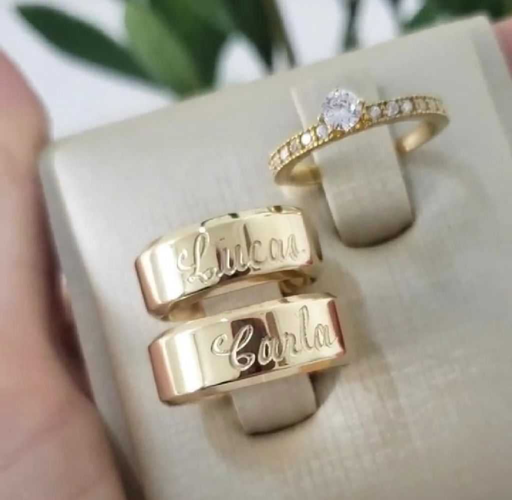 Brindes: Caixinha de Veludo Grátis, Gravação Grátis, Amostra do Polidor para polir as alianças e Flanela e Anel solitário ele é folheado, sortido (Modelo não necessariamente igual ao da foto, pois depende da nossa disponibilidade no estoque no ato do envio) e não damos garantia sobre ele.