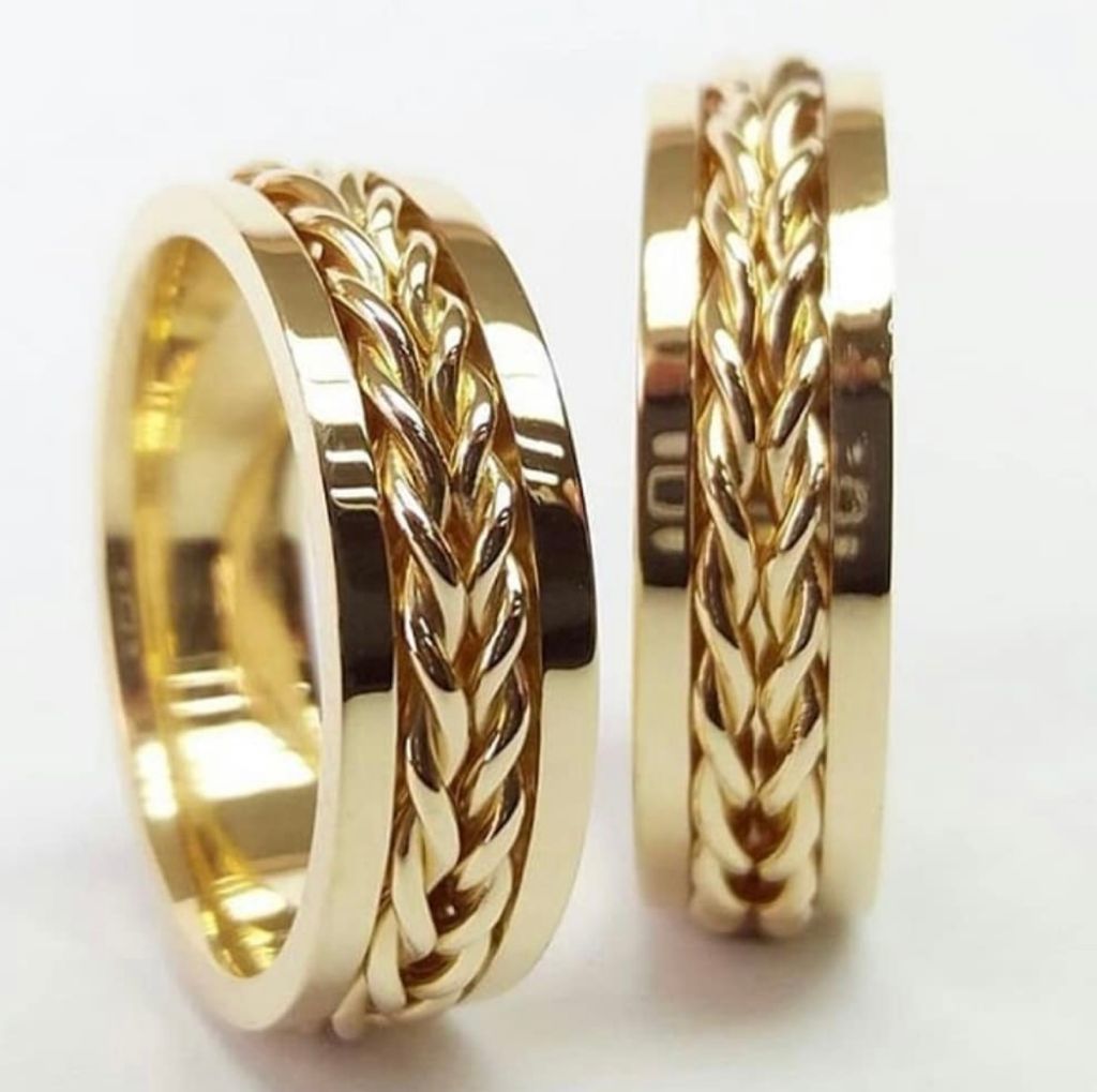 Par de Alianças Moedas Reta 8MM Trabalhada Trançada