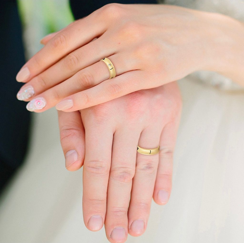 Par de Alianças Ouro 18k Reta 4MM e Pedra 8 Gramas