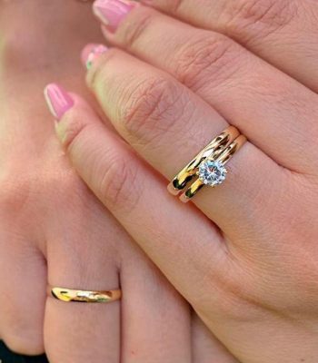 Par de Alianças Ouro 18K Abaulada 5MM e Pedra 10 Gramas